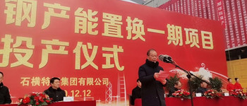 12月12日,董事長(zhǎng)魏新民出席泰安特種用鋼產(chǎn)能置換一期項(xiàng)目投產(chǎn)儀式并致辭。