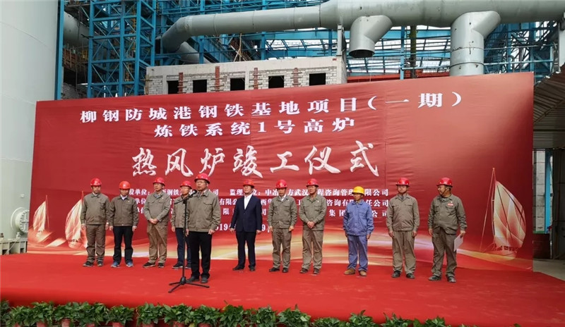 2019年11月29日,柳鋼防城港鋼鐵基地?zé)掕F系統(tǒng)1#高爐熱風(fēng)爐舉行竣工儀式。山冶設(shè)計(jì)董事長魏新民、副總經(jīng)理宋志順出席了竣工儀式,同時(shí)出席竣工儀式的還有柳鋼集團(tuán)總經(jīng)理甘貴平,柳鋼集團(tuán)副總經(jīng)理、廣西鋼鐵黨委書記、董事長閻駿,廣西華銳鋼鐵工程設(shè)計(jì)咨詢有限責(zé)任公司副總經(jīng)理、總工程師吳建霖,十一冶建設(shè)集團(tuán)有限責(zé)任公司總經(jīng)理何權(quán)等相關(guān)人員。