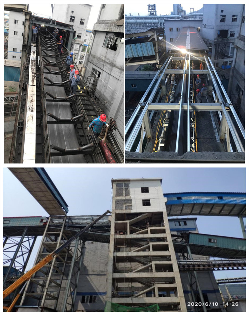 至新區(qū)7、8號焦?fàn)t輸煤生產(chǎn)線是焦化筒倉一期一步工程施工難度最大的一條生產(chǎn)線,新建3個轉(zhuǎn)運站、2條皮帶通廊、改造1條皮帶通廊,全長400多米。皮帶通廊即有半地下鋼筋混凝土結(jié)構(gòu)也有架空鋼結(jié)構(gòu),架空部分緊靠鐵路及高落差護(hù)坡,與生產(chǎn)嚴(yán)重交叉,組織施工及吊裝難度極大。項目部各專業(yè)人員積極配合,協(xié)調(diào)各施工單位,分段作業(yè),由于組織得力,各專業(yè)銜接緊密、配合緊張有序,土建積極給鋼結(jié)構(gòu)、鋼結(jié)構(gòu)積極為機裝、機裝積極為電裝及后工序創(chuàng)造條件,特別是最后三天,鋼結(jié)構(gòu)收尾、支架及皮帶安裝、單機調(diào)試、設(shè)備運行調(diào)整、舊皮帶通廊改造、新舊系統(tǒng)聯(lián)動控制調(diào)試、照明報警及語音系統(tǒng)安裝調(diào)試,時間緊任務(wù)重施工難責(zé)任大,現(xiàn)場各類施工人員多,項目部人員靠現(xiàn)場,緊抓安全,積極協(xié)調(diào),最終克服了各種困難,最終超額提前圓滿完成任務(wù)。