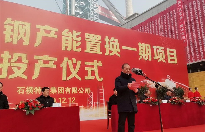 1212日,董事長(zhǎng)魏新民出席泰安特種用鋼產(chǎn)能置換一期項(xiàng)目投產(chǎn)儀式并致辭。