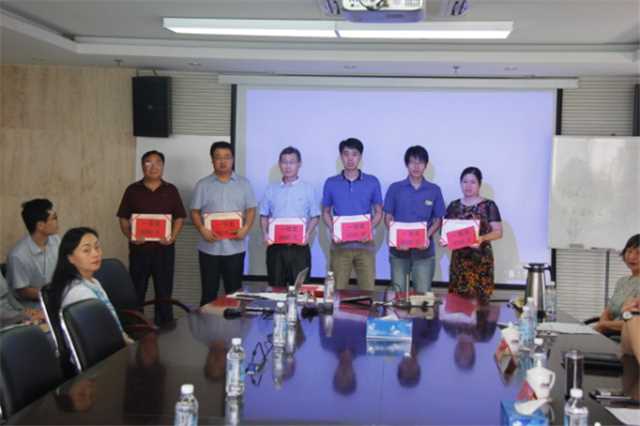 公司董事長魏新民、總經(jīng)理衣忠德給一等獎?wù)撐淖髡哳C發(fā)榮譽(yù)證書及獎勵。