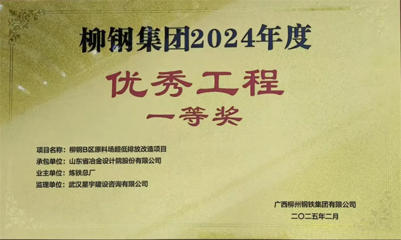 由山冶設(shè)計(jì)EPC總承包的柳鋼B區(qū)原料場(chǎng)超低排放改造項(xiàng)目成績斐然,榮獲廣西柳鋼集團(tuán)2024年度優(yōu)秀工程一等獎(jiǎng)及2024年度安全文明施工標(biāo)準(zhǔn)化工地兩項(xiàng)殊榮,這體現(xiàn)了柳鋼集團(tuán)對(duì)該項(xiàng)目施工及現(xiàn)場(chǎng)管理的高度認(rèn)可。