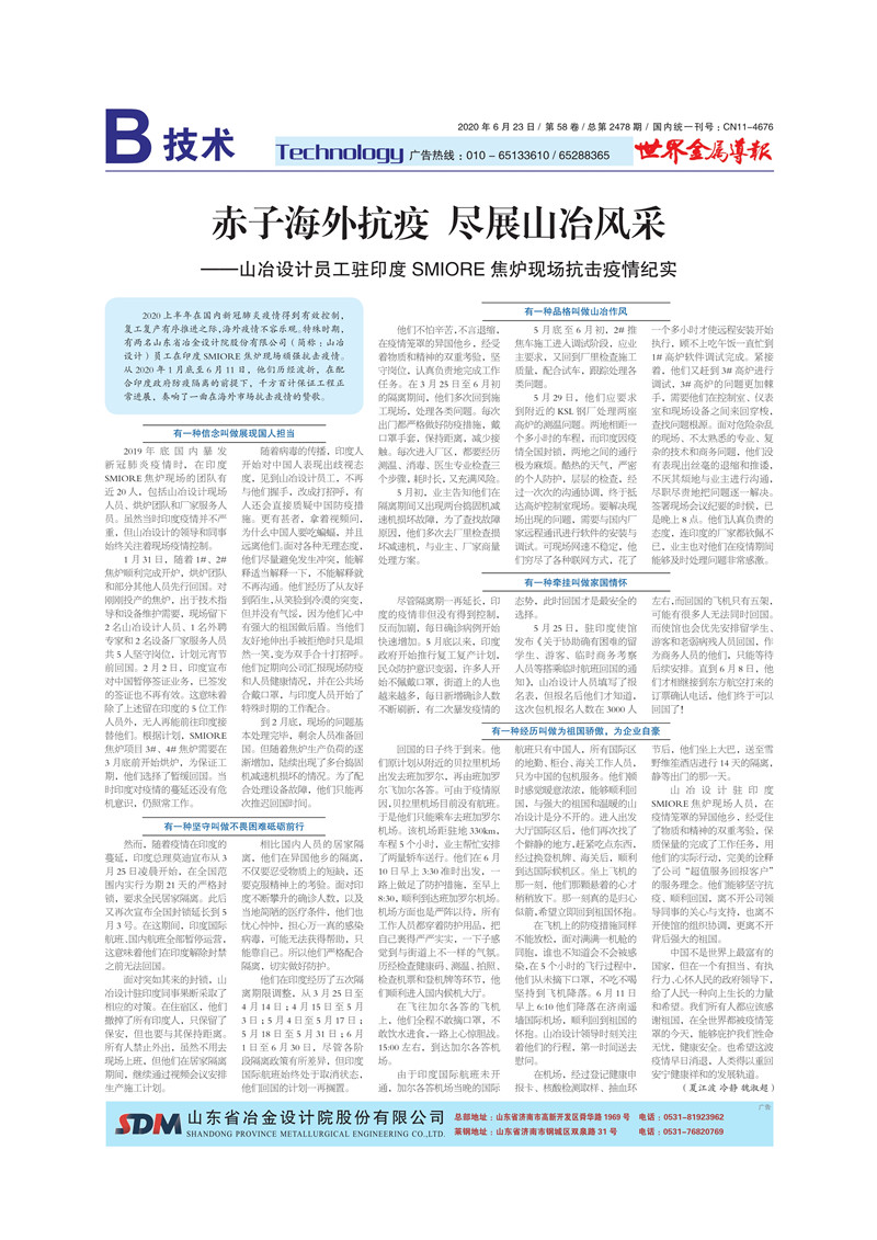 赤子海外抗疫 盡展山冶風(fēng)采——山冶設(shè)計(jì)員工駐印度SMIORE焦?fàn)t現(xiàn)場抗擊疫情紀(jì)實(shí)