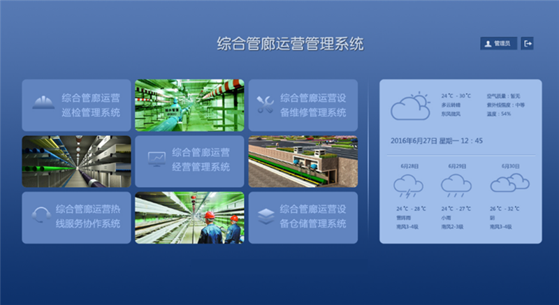 智慧管廊:以“知、控、警、決、管、營(yíng)、享”為管理方針,以大數(shù)據(jù)、物聯(lián)網(wǎng)、云架構(gòu)、智能組態(tài)、綜合業(yè)務(wù)決策分析、人工智能等技術(shù)為支撐,結(jié)合城市地理信息系統(tǒng)(GIS)和建筑信息模型(BIM),通過(guò)整合各數(shù)據(jù)分析,構(gòu)建指揮統(tǒng)一、功能齊全、反應(yīng)靈敏、運(yùn)轉(zhuǎn)高效的管廊運(yùn)行綜合管理平臺(tái),包括1個(gè)中心、1個(gè)平臺(tái)、7個(gè)應(yīng)用系統(tǒng)、N個(gè)終端,對(duì)綜合管廊內(nèi)環(huán)境、設(shè)備及運(yùn)行進(jìn)行實(shí)時(shí)監(jiān)控、運(yùn)營(yíng)管理和安全預(yù)警,提高決策指揮效率,切實(shí)提高處置突發(fā)安全事件的能力,以保障系統(tǒng)安全、高效運(yùn)行。